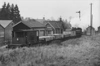 The brick nature of the building and the lack of shelter for passengers can clearly be seen in this view. The wooden goods shed stands to the left of the main station building. By this date the station was worked by one man.