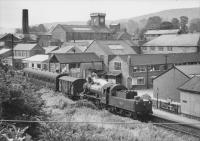 Engine 46526 approaches Cam station with the 9:55am train from Dursley. Dominating the background is the mill complex of Hunt & Winterbotham.